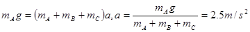 点评:本题难度较小,如果以三个物体为研究对象,计算量就小了很多,加速度由A的重力提供,注意滑轮所受合力应用平行四边形定则判断