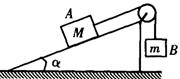 2、选择题 如图所示,倾角为α的斜面静止不动,滑轮的质量和摩擦不计,质量为M的物体A与斜面的动摩擦因素为μ(设最大静摩擦力与滑动摩擦力大小相等),质量为m的物体B通过定 滑轮用细线与M相连接.则