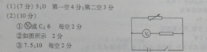 (2)①V3;6;②电路如图所示:③7.5,10.