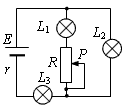 5、选择题 如图所示,L1、L2、L3为三个相同的灯泡。在变阻器R的滑片P向上移动过程中,下列判断中正确的是