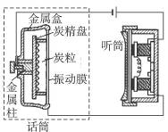 2、计算题 电话的话筒可以把声音变化转换为电流变化.炭精话筒的结构如图5-1-12所示,炭精盘和振动膜之间充满了接触不紧密的炭粒.声音使振动膜振动,改变炭粒接触的紧密程度,使炭粒的电阻发生变化,从而改变电路电流的大小.如果炭粒的电阻能在45—55 Ω的范围内变化,当加在它两端的电压为3 V时,求电路中电流变化的范围.