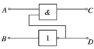 3、填空题 在如图所示的逻辑电路中,门电路“1”为非门,门电路“&”为与门。当A端输入电信号“1”、B端输入电信号“0”时,则在D和C端输出的电信号分别为?;??。(提示:A、D为门电路“&”的输入端)