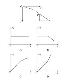 2、选择题 如图所示,从O点沿x方向水平抛出的物体,抵达斜面上端的P点时,其速度方向恰好与斜面平行,然后沿着斜面无摩擦滑下.从抛出点开始计时,下列描述该物体沿x方向和y方向运动的v-t图象中,大致正确的是(? )