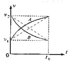 2、选择题 从同一地点同时沿同一方向做直线运动的两个物体A、B的速度时间图象如图实线所示。在0-t0时间内,下列说法中错误的是(?)