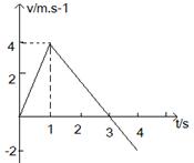3、填空题  一质点做直线运动的v – t图象如图示,质点在0 – 1s内,加速度大小为?m/s2;在1 – 3s内质点做?运动,加速度大小为?m/s2;在3 – 4s内质点做??运动。?