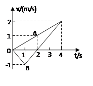 4、选择题  在如图所示的v—t图中,A、B两质点同时从同一点在一条直线上开始运动,运动规律用A、B两图线表示,下列叙述正确的是(?)