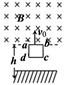 4、计算题 如下图所示,在距离水平地面h=0.8m的虚线的上方有一个方向垂直于纸面水平向内的匀强磁场。正方形线框abcd的边长l=0.2m,质量m=0.1kg,电阻R=0.08Ω。某时刻对线框施加竖直向上的恒力F=1N,且ab边进入磁场时线框以v0=2m/s的速度恰好做匀速运动。当线框全部进入磁场后,立即撤去外力F,线框继续上升一段时间后开始下落,最后落至地面。整个过程线框没有转动,线框平面始终处于纸面内,g取10m/s2。求: