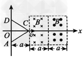 2、选择题 如图所示,两个垂直纸面的匀强磁场方向相反,磁感应强度的大小均为B,磁场区域的宽度均为a,一个正三角形导线框ADC(高为a)从图示位置沿图示方向匀速穿过两磁场区域,以逆时针方向为电流的正方向,则感应电流I与线框移动距离x的关系图像正确的是