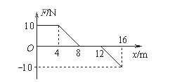 4、选择题 物体在变力F作用下沿水平方向做直线运动,物体质量m=10kg,F随坐标x的变化情况如图所示。若物体在坐标原点处由静止出发,不计一切摩擦。借鉴教科书中学习直线运动时由v-t图象求位移的方法,结合其他所学知识,根据图示的F-x图象,可求出物体运动到x=16 m处时,速度大小为(? )