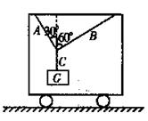 1、选择题 重100N的物体通过轻绳A、B、C悬挂在小车的天花板上,它们静止时轻绳A、B与竖直方向夹角分别为
