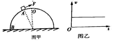 1、选择题 如图甲所示,上表面粗糙的半圆柱体放在水平面上,小物块从半圆柱体上的A点,在外力F的作用下沿圆弧向下滑到B点,此过程中F始终沿圆弧的切线方向且半圆柱体保持静止状态。物块运动的速率