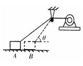 2、选择题 电动机以恒定的功率P和恒定的转速n(r/s)卷动绳子,拉着质量为M的木箱在粗糙不均水平地面上前进,如图所示,电动机卷绕绳子的轮子的半径为R,当运动至绳子与水平成角时,下述说法正确的是