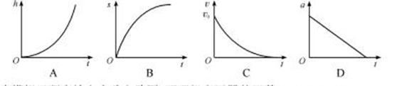 2、选择题 如图,滑块以初速度v0沿表面粗糙且足够长的固定斜面,从顶端下滑,直至速度为零。对于该运动过程,若用h、s、v、a分别表示滑块的下降高度、位移、速度和加速度的大小,t表示时间,则下列图象最能正确描述这一运动规律的是(?)