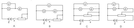 1、选择题 下列“测绘小灯泡的伏安特性曲线”实验电路图,正确的是( )