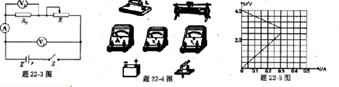①请根据电路题22-3图,用笔画线代替导线将题22-4图中的实验器材连接成实验电路,