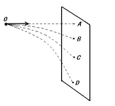 3、选择题  如图所示,某同学为了找出平抛运动的物体初速度之间的关系,用一个小球在O点对准前方的一块竖直放置的挡板,O与A在同一高度,小球的水平初速度分别是 ,不计空气阻力,打在挡板上的位置分别是B、C、D,且