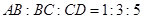 ,不计空气阻力,打在挡板上的位置分别是B、C、D,且 。则