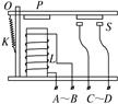 1、选择题 如图所示为小型电磁继电器的构造示意图,其中L为含铁芯的线圈,P为可绕O点转动的铁片,K为弹簧,S为一对触头,A、B、C、D为四个接线柱.继电器与传感器配合,可完成自动控制的要求,其工作方式是