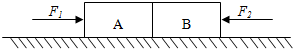 2、选择题 如图所示,A、B并排紧贴着放在光滑的水平面上,用水平力F1、F2同时推A、B,如F1=10N,F2=6.0N,mA<mB,则A、B间的压力可能为
