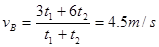 本题解析:设A到B的运动时间为t1,B到C的运动时间为t2,,可得t1=t2,可知B点为AC的中间时刻,根据中间时刻的瞬时速度等于平均速度可知