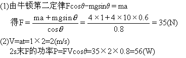 (2)2s末力F的功率.(g=10m/、sin37°="0.6" cos37°=0.8,斜面足够长)