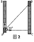2、选择题 竖直放置的两端封闭的玻璃管中注满清水,内有一个红蜡块能在水中以0.1 m/s的速度匀速上浮,现当红蜡块从玻璃管的下端匀速上浮的同时,使玻璃管水平匀速向右运动,测得红蜡块实际运动方向与水平方向成30°角,如图2所示。若玻璃管的长度为1.0 m,则可知玻璃管水平方向的移动速度和水平运动的距离为?(?)