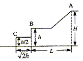 2、计算题 滑雪者从A点由静止沿斜面滑下,沿一平台后水平飞离B点,地面上紧靠平台有一个水平台阶,空间几何尺度如图所示,斜面、平台与滑雪板之间的动摩擦因数为μ。假设滑雪者由斜面底端进入平台后立即沿水平方向运动,且速度大小不变。求: