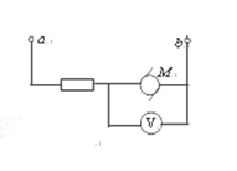 3、选择题 .在如图所示的电路中,定值电阻的阻值为10Ω,电动机M的线圈电阻值为2Ω,a、b两端加有44V的恒定电压,理想电压表的示数为24V,由此可知(?)