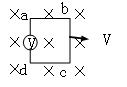 2、选择题 如图所示,线框abcd边ad接毫伏表,匀强磁场的方向垂直线框平面,使框在匀强磁场中(包括毫伏表)向右匀速运动,则(?)