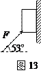 4、简答题 重力G=40N的物体,与竖直墙壁间的动摩擦因数μ=,若用斜向上的F=50N的推力托住物体,使物体处于静止,如图13所示,求这时物体受到的摩擦力是多大?要使物体能匀速下滑,推力F的大小应变为多大?(sin53?=0.8,cos53?=0.6)