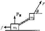 2、选择题 如图所示,质量为m1,m2的两个物体通过轻弹簧连接,在力F的作用下一起沿水平方向做匀速直线运动(m1在地面,m2在空中),力F与水平方向成θ角.则m1所受支持力N和摩擦力f正确的是( )