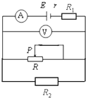 4、选择题 在如图所示的电路中,电源电动势为E、内电阻为r,将滑动变阻器R的滑片P从图示位置向右滑动的过程中,下列判断中正确的是( )