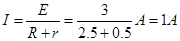 点评:闭合电路欧姆定律的应用,充分利用题目的已知条件,结合欧姆定律I=