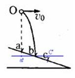 4、选择题 如图,斜面上a、b、c三点等距,小球从a点正上方O点抛出,做初速为v0的平抛运动,恰落在b点。若小球初速变为v,其落点位于c,则