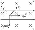 4、简答题  如图15-4-10所示,匀强电场方向水平向右,匀强磁场方向垂直纸面向里,一质量为m,带电荷量为q的粒子以速度v与磁场垂直,与电场成45°角射入复合场中恰能做匀速直线运动,求电场强度E,磁感应强度B的大小?