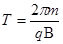 点评:本题难度较小,主要是洛仑兹力提供向心力的圆周运动,半径和周期公式的考查