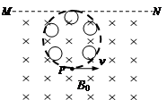 2、计算题 (16分)如图(a)所示,垂直于纸面向里的有界匀强磁场,MN是磁场的上边界,磁场宽度足够大,磁感应强度B0=1×10-4T.现有一比荷为
