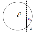 3、计算题 (18分)如图,半径为R的圆是一圆柱形匀强磁场区域的横截面(纸面),磁感应强度大小为B,方向垂直于纸面向里。一带正电荷的粒子沿图中直线以速率v0从圆上的a点射入柱形区域,从圆上b点射出(b点图中未画)磁场时速度方向与射入时的夹角为60°。已知圆心O到直线的距离为