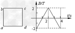 1、选择题 矩形导线框abcd放在匀强磁场中,磁感线方向与线圈平面垂直,磁感应强度B随时间变化的图象如图所示。t=0时刻,磁感应强度的方向垂直于纸面向里。在0-4s时间内,线框的ab边受力随时间变化的图象(ab边所受安培力的方向规定以向左为正方向),可能下图中的