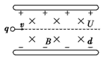 5、选择题 不计重力的负粒子能够在正交匀强电场和匀强磁场中匀速直线穿过。设产生匀强电场的两极板间电压为U,距离为d,匀强磁场的磁感应强度为B,粒子带电荷量为q,进入速度为v,以下说法正确的是
