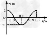 3、选择题 如图所示是一列向右传播的横波在某一时刻的波形图象。如果此列波的波速为2.4 m/s,则在传播过程中位于x轴上0.3 m~0.6 m间的某质点P,从这一时刻起在1.25 s内所经过的路程为?