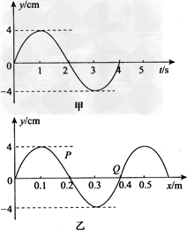 如图甲所示为波源的振动图像(在t=0时刻之前波源就已经开始振动了),图乙为xy平面内沿x轴传播的简谐横波在t=0时刻的波形图像,t=0时刻P点向y轴负方向运动,关于图乙上x=0.4 m处的Q点的说法正确的是