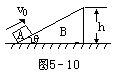 2、简答题 如图5-10所示,倾角θ=30°,高为h的三角形木块B,静止放在一水平面上,另一滑块A,以初速度v0从B的底端开始沿斜面上滑,若B的质量为A的质量的2倍,当忽略一切摩擦的影响时,要使A能够滑过木块B的顶端,求V0应为多大?