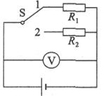 4、选择题 如图所示电路中,电源的内电阻不能忽略.已知定值电阻R1=10Ω,R2=8Ω.当开关S接到位置1时,电压表V的示数为2V;当开关S接到位置2时,电压表V的示数可能为( )