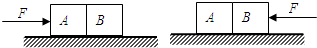 1、选择题 如图所示,置于光滑水平面上的木块A和B,其质量为mA和mB.当水平力F作用于A左端上时,两物体一起作加速运动,其A、B间相互作用力大小为N1;当水平力F作用于B右端上时,两物体一起做加速度运动,其A、B间相互作用力大小为N2.则以下判断中正确的是