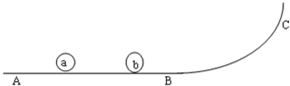 4、简答题 现有光滑的轨道ABC,其中AB部分是水平的,上面有大小相等两球a和b,b球静止,a球质量是2kg,b球4kg,a球正以速度υ0=7m/s向右运动,与b球发生了碰撞.已知碰撞时间是t=0.01s,b球被碰后沿BC曲面上升的最大高度H=0.8m.