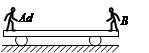 2、选择题 如图所示,在光滑的水平地面上有一辆平板车,车的两端分别站着人A和B,A的质量为mA,B的质量为mB,mA>mB。最初人和车都处于静止状态。现在,两人同时由静止开始相向而行,A和B对地面的速度大小相等,则车(?)