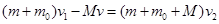 (2)设子弹射入木块后的共同速度为v1,以水平向左为正,则由动量守恒有:?①(2分)