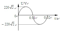 4、选择题 如右图为理想变压器原线圈所接电源电压波形,原副线圈匝数之比n1∶n2 = 10∶1,串联在原线圈电路中电流表的示数为1A,下列说法正确的是(?)