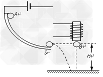 3、选择题 如图所示,在研究平抛运动时,小球A沿轨道滑下,离开轨道末端(末端水平)时撞开接触开关S ,被电磁铁吸住的小球B同时自由下落,改变整个装置的高度H做同样的实验,发现位于同一高度的A、B两个小球总是同时落地,该实验现象说明了A球在离开轨道后